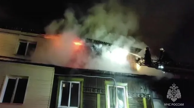 В Новосибирске горит деревянный многоквартирный дом площадью 600 кв. м, частично обрушилась крыша, трое пострадали и госпитализированы.