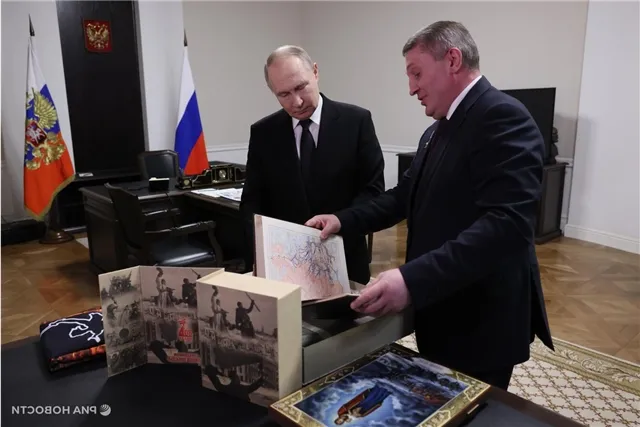Губернатор Бочаров подарил Путину книгу «Сталинград - без срока давности» и торжественное знамя
