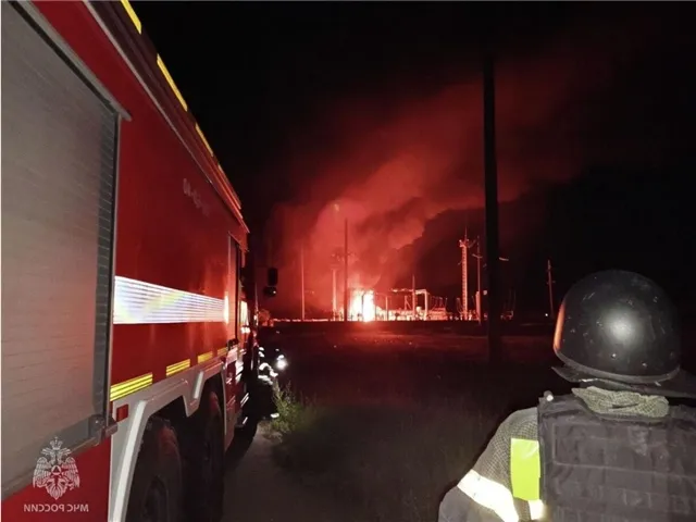 Сотрудники МЧС России потушили пожар на электроподстанции в геническом Херсонской области после обстрела ВСУ, сообщили в ГУ МЧС региона.