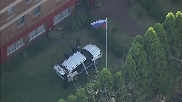 Машина протаранила ворота российского консульства в Сиднее, пострадал полицейский, подозреваемого задержали, сообщает 9News.